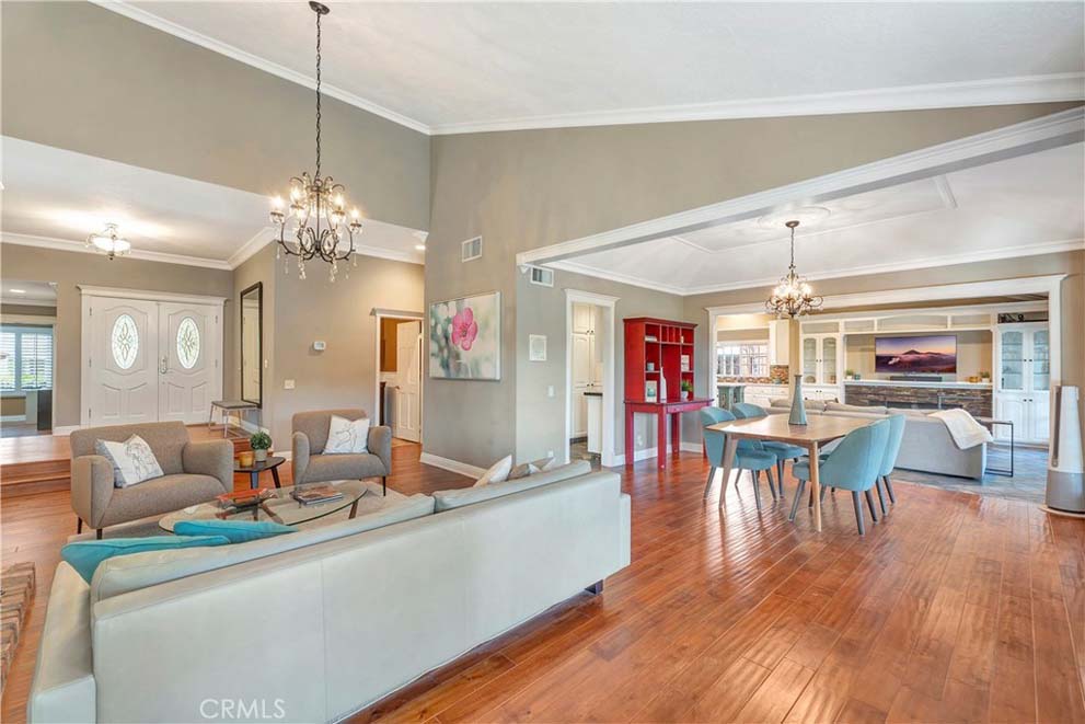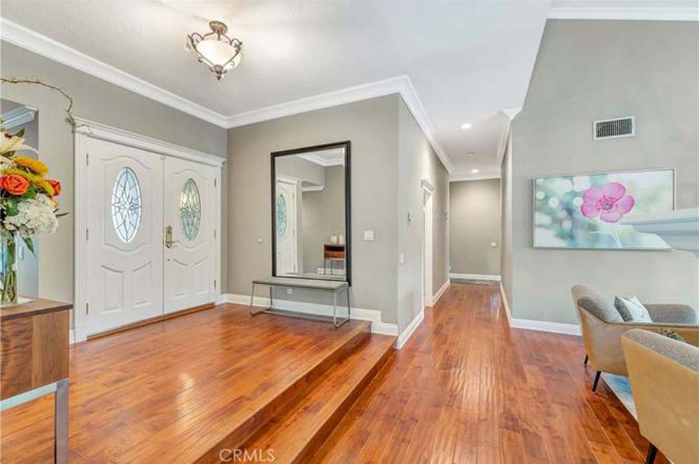 This delightful single story home is situated in the exclusive community of Montbury on the Hill. Nestled in North Lake Forest, this sought-after community features wide streets, customized homes, equestrian and walking trails, two private tennis courts, and two pickle ball courts, all for enhancing your daily enjoyment. Located close to everything, yet you will feel like you are in the country! Simple elegance describes the beauty of this semi-custom home with volume ceilings & French doors throughout; the spacious open floor plan welcomes natural light throughout the entire home. Beautifully remodeled kitchen with stainless steel appliances – gas stovetop, refrigerator, double-oven, microwave, dishwasher; custom cabinetry, gorgeous quartz countertops, spacious center island with wine refrigerator, and custom tile backsplash. A bonus is the adjacent separate pantry area with sink, wine rack, and custom cabinetry. The delightful living room features a wood burning fireplace and custom built-in cabinetry. Entertain in the dining area with coffered ceiling or relax in the family room with fireplace and built-in cabinets. French doors open from each room to the exceptional entertaining back yard. Recessed LED lighting, upgraded light fixtures, and hardwood flooring add to the beauty of this home. The peaceful, spacious master bedroom suite is complimented with volume ceilings, recessed can-lights, built-in cabinetry, and a romantic fireplace. The fully remodeled master bathroom has a separate tub & shower. The large secondary bedrooms, the remodeled secondary bathroom, and the interior laundry room, including the washer and dryer, enhance this fabulous home. A large second-floor bonus room is a huge plus! Privacy abounds in the rear yard for relaxation or smelling the wonderful aroma of cooking on the built-in barbecue. There is ample parking in the 3-car garage with epoxy floor finish and built-in cabinetry, or on the large driveway. Award winning schools, Toll Road access closeness, shopping, and dining are additional amenities for this fabulous home – A must-see! Come to the open house, and make this exceptional home your own! Let the fun begin!