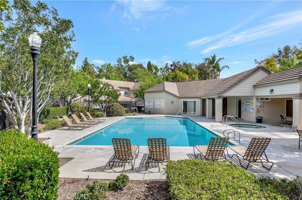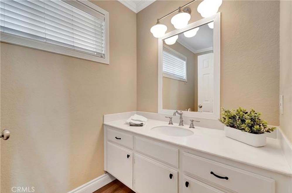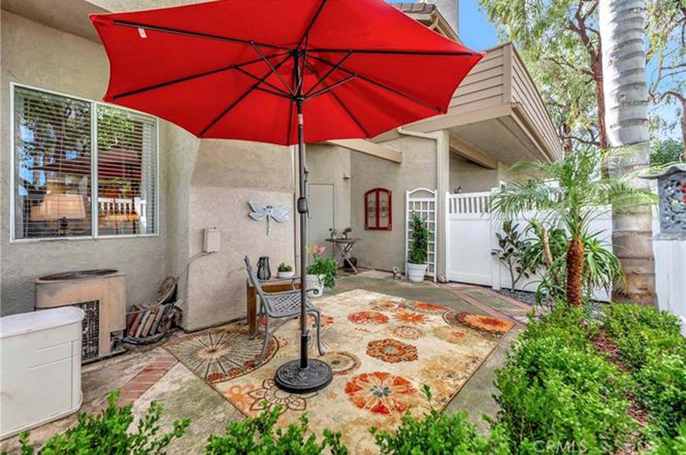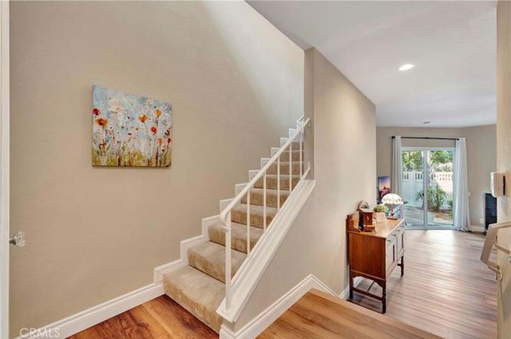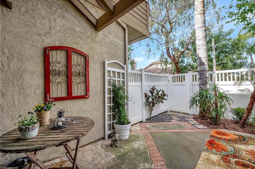 Welcome to the peaceful, highly desirable community of Crestline located in Laguna Hills, beach close, and with easy access to everything! This beautifully appointed 2 bedroom, 2 ½ bath home is move-in ready. You will delight in this spacious, open floorplan, with soaring ceilings, wood burning fireplace, fully remodeled kitchen with custom cabinetry, stainless steel appliances – refrigerator included, 5 burner gas range, built-in microwave and dishwasher; granite countertops and farmhouse sink with upgraded faucet. The separate pantry with shelving is an added plus. The kitchen opens to the spacious dining area and living room with wood burning fireplace. Natural light abounds! Enjoy the breeze coming through the patio sliding door or soak some sun on your private patio with gate access to the greenbelt area. The downstairs guest bathroom enhances this great floorplan. Full house PEX piping, new A/C unit, and new water heater top the list of wonderful improvements! The luxury vinyl plank flooring, designer paint colors, custom baseboards, ceiling fans, upgraded lighting throughout, and window coverings enable you to move in and start enjoying your new surroundings immediately! The two ensuite bedrooms upstairs are so spacious! Both bathrooms have been upgraded with new vanities, lighting, and fixtures. Separate upstairs laundry room with the front-loading washer and dryer set included! Comfort abounds in this wonderful home so race to make it your own! The schools are excellent with distinguished rankings. The Laguna Hills Community Center is right up the street with a beautiful park, playground, skate park, soccer and baseball fields. Shopping, dining, Costco, the Aliso Viejo Town Center, Trader Joes, the Toll Road and freeway are close, making this home perfect in so many ways! Welcome home!